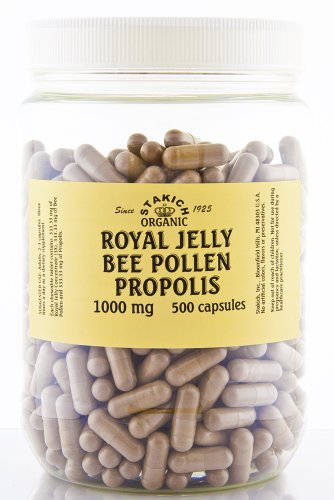 Each capsule contains 333.33 mg of Royal Jelly Concentrate (powder), 333.33 mg of Bee pollen and 333.33 mg of Propolis. Stakich Royal Jelly Bee Pollen Propolis Capsules contains the richest known source of vitamins, minerals, proteins, amino acids, hormones, enzymes and fats, as well as significant quantities of natural antibiotics. Most of the known vitamins in these capsules exist in perfect proportion, which further enhances their value.