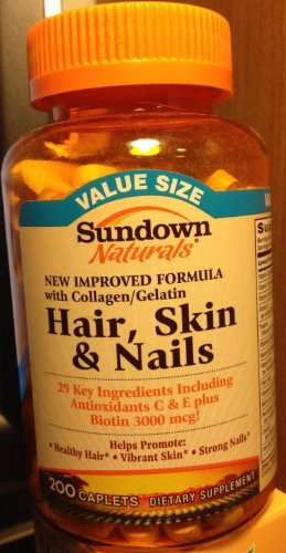 Sundown Naturals Improved Hair, Skin and Nails formula, with Collagen, provides an extensive array of nutrients, including Vitamin C and Biotin, to support the structural foundation of hair, skin and nails. Vitamins A along with B Vitamins Riboflavin, Niacin and folic acid round out these expertly formulated tablets for extra support.