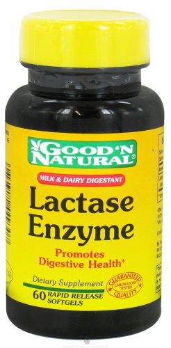 Good 'N Natural - Lactase Enzyme - 60 Softgels Good 'N Natural - Lactase Enzyme. Many factors can contribute to poor digestion, including lactose intolerance. Lactase is a digestive enzyme that helps break down the sugar in milk and dairy products. Milk and dairy products are important sources of Calcium. Supplementing with Super Lactase Enzyme can make milk more readily digestible to your system. Good 'N Natural Lactase Enzyme Contains: No Yeast No Milk No Milk Derivatives No Lactose No Egg No Grapefruit No Fish No Sugar No Artificial Flavor No Sodium Good 'N Natural the Manufacturer.You might think that everyone in the nutritional supplement business manufactures their own products. They don't. At Good 'N Natural they do. Good N' Natural formulates their nutritional supplements in their own state-of-the-art laboratories - Good N' Natural never trusts other companies to make their products for them. Good N' Natural source the best ingredients, conduct comprehensive testing and package and ship their products directly to you. This allows them to offer you products of outstanding quality at the greatest value to you and your customers. Good 'N Natural Sets the Toughest Standards in the BusinessOnly ingredients from premium suppliers meet Good N' Natural's rigorous Quality Assurance Standards. They have to comply with GMP food quality standards. Because they are so stringent every Good 'N Natural product is subjected to hundreds of quality tests and assays throughout the manufacturing process to verify purity and full potency...from bottle to bottle. As an added measure, Good N' Natural has our facilities audited by the United States Pharmacopeia (USP) and STR, a leading independent pharmaceutical and dietary supplement quality evaluation firm. STR also verifies the science behind Good 'N Natural formulations.