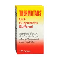 THERMOTABS tablets are especially designed to minimize fatigue, muscle cramps or heat prostration due to excessive perspiration*. THERMOTABS can be used by golfers, tennis players and other athletes as well as at the beach or in homes, offices, stores, kitchens or industries where high temperatures can cause heat fatigue. Each tablet contains 452 mg sodium chloride. *These statements have not been evaluated by the Food and Drug Administration. This product is not intended to diagnose, treat, cu
