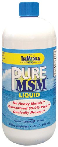 MSM Liquid by Trimedica 16 oz Liquid MSM Liquid 16 oz Liquid TriMedica brand PureMSM is high quality MSM strictly tested for purity and potency for maximum benefits for your healthy joints and skin. TriMedica is a trusted name for MSM so you know that PureMSM is your right choice - every time 99 Pure No Heavy Metal Suggested Use As a dietary supplement Mix with your favorite juice or take alone. 1 to 2 teaspoons once or twice daily. Use as directed. 1 teaspoon 350mg MSM - Or as directed by your healthcare professional. Supplement Facts Serving Size 2 Teaspoon Servings Per Container 24 Amount Per Serving Daily Value Methylsulfonylmethane 700 mg Daily Value Not Established Percent Daily Values are based on a 2 000 calorie diet Other Ingredients Deionized water benzyl alcohol. Does Not Contain Sugar salt soy wheat dairy yeast gluten and preservatives. Warnings Keep out of reach of children. As with all dietary supplements consult your healthcare professional before use. See product label