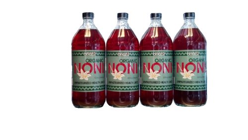 Unpasteurized Raw Organic Hawaiian Noni Juice - 32 Fl Oz Glass Bottle - 4 Pack