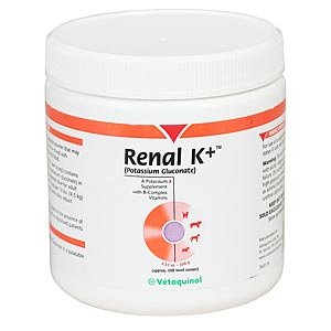 Highly palatable potassium supplement in the form of potassium gluconate with B-complex vitamins; for use in managing hypokalemia associated with renal insufficiency in cats and dogs.