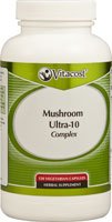 What is Vitacost Mushroom Ultra-10 Complex? Vitacost Mushroom Ultra-10 Complex is an exclusive blend of ten mushroom extracts, including shiitake, cordyceps, reishi, blazei, maitake and more, providing wide-ranging nutritional benefits and immune-health support.* Mushrooms, which are classified as fungi (plants without roots, leaves, seeds or flowers that don't require sunlight to grow) rather than vegetables, have been used for centuries for their health-promoting benefits. Shiitake mushrooms have been cultivated for over 1,000 years and can be traced to the Song Dynasty (960-1127). How does Vitacost Mushroom Ultra-10 Complex support health?Compounds found in mushrooms are believed to posses immune-health-promoting properties.*Mushrooms contain a compound called beta-glucan, which consists of thousands of glucose molecules chemically bound together. Beta-glucan is believed to be very beneficial to immune system function.* A small amount of aloe vera is added to facilitate digestion* Why choose Vitacost Mushroom Ultra-10 Complex? Unique combination of mushrooms and botanicalsCan be taken year round to help support immune health*Suitable for vegetariansContains 60 servings per bottleExceptional quality at an extraordinary valueAbout VitacostVitacost nutritional products are manufactured to high standards of quality, efficacy and safety. Each Vitacost product meets or exceeds the standards and requirements set forth in the FDAs Code of Federal Regulation (21 CFR, 111) Current Good Manufacturing Practices (CGMP). *These statements have not been evaluated by the Food and Drug Administration. This product is not intended to diagnose, treat, cure or prevent any disease.