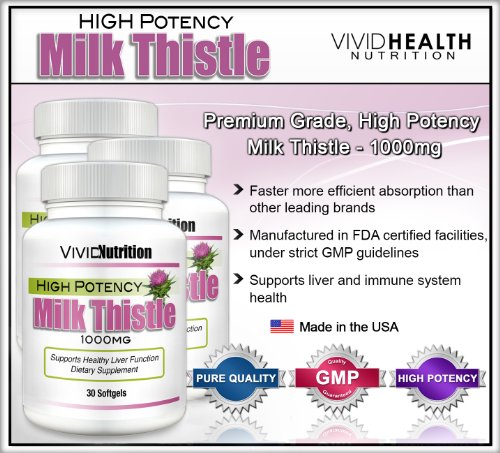 Vivid Health Nutrition High Potency Milk Thistle (3 bottles) - Standardized Silymarin 4:1 Concentrated Extract - 1000mg, 30 Softgels per Bottle